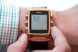DSN developed a new corporate identity and brand and promotional campaign for Metawatch, that signaled the company’s new focus on beautiful, premium and fashionable smart watches. “Art of the Glance”, is a mindset to keep the users attention socially in the real world, politely glancing at your watch to update on important and timely information.